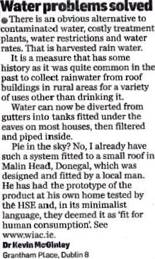 NewsA Letter From One of Wiac's Happy Customers(Published in the Irish Independent on Tuesday 12th November 2013) Wiac Finalist in Sustainable Ireland AwardsWiac featured on farmers journal tv (September 2016)Grants available under Tams 2 for organic farmers 40% +20% top up Rainwater Harvesting System (approved systems only) |